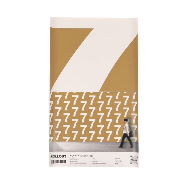 Wayfinder Numbers is a graphic wallcovering that serves a functional purpose within the context of architecture. While wallpaper is typically decorative, and symbols are generally functional, this combination of the two creates new possibilities for architects, interior designers and space planners to incorporate custom wallcoverings as a creative approach to functional design.