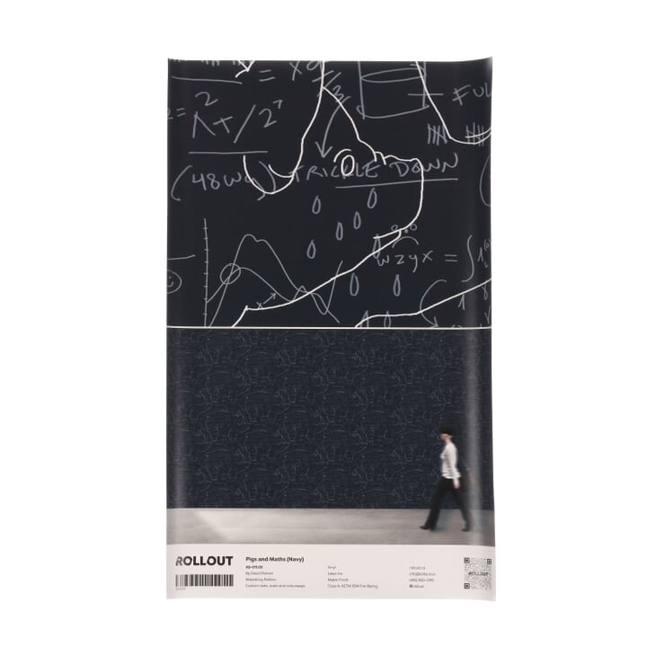 Pigs & Maths is a playful commentary on economics and the contemporary value system. This pattern sees numbers, formulas, pictograms, diagrams from science and sports, tic tac toe games, and improvised hieroglyphics combined into designs that form an impactful and versatile selection of wallcoverings.