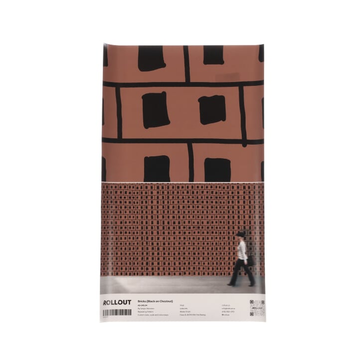 With this design, artist Sergio Mannino created a cartoonish stack of cinder blocks that is level, orderly and playfully imprecise. Like a wall built by and for stick-people, the simplified pattern evokes a childlike naiveté. But it’s also a sophisticated, ironic wink to the viewer, drawing attention to the actual built-form construction on which it hangs.