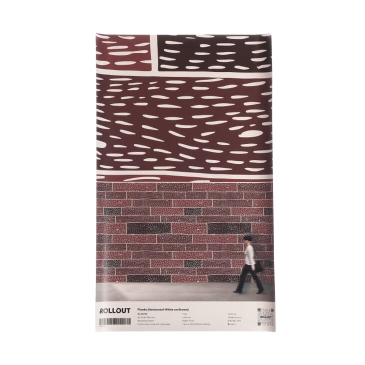 In this design by artist Sergio Mannino, cartoonishly hand-drawn boards are arranged as though set into a traditional hardwood floor. A childlike simplicity infuses the pattern with casual playfulness, while the thick white or black outlines serve to brighten or darken the bold, underlying color of each variant.