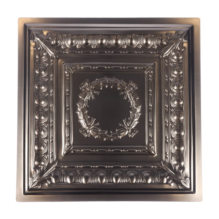 Empire Ceiling Tiles are made from our robust Signature Series 0.030-inch-thick vinyl, and are molded directly from an original, historic tin ceiling tile design. These flexible tiles can be mounted to a ceiling surface using adhesive, installed below existing mineral fiber tiles to reface an existing ceiling, or used as drop ceiling tiles in both standard 1-inch and slimline 9/16-inch T-bar grid systems. They are Class A fire-rated, 100% recyclable, completely waterproof, Greenguard Gold certified for indoor air quality and made in the USA.